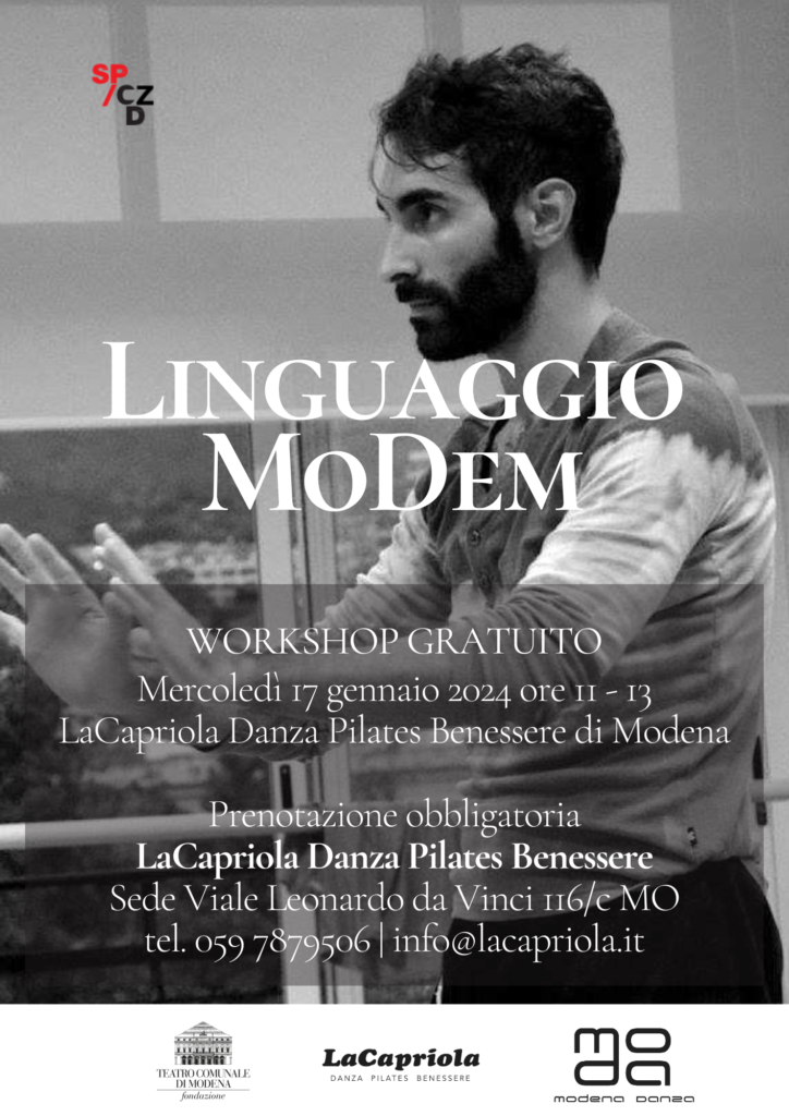 Il workshop sul Linguaggio MoDem, ha come spunto di lavoro i tre testi redatto dallo stesso coreografo “Corpo devoto”, “Corpo etico” e “Corpo istintivo”, ora raccolti in un unico testo OMNIA CORPORA nel quale Roberto Zappalà esplicita considerazioni e riflessioni in relazione al suo approccio alla coreografia. Il testo raccoglie note e analisi, riguardanti il processo costruttivo del lavoro creativo del coreografo.